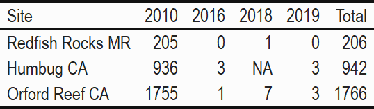 Table 5: Redfish Rocks Marine Reserve Species Counts by Year