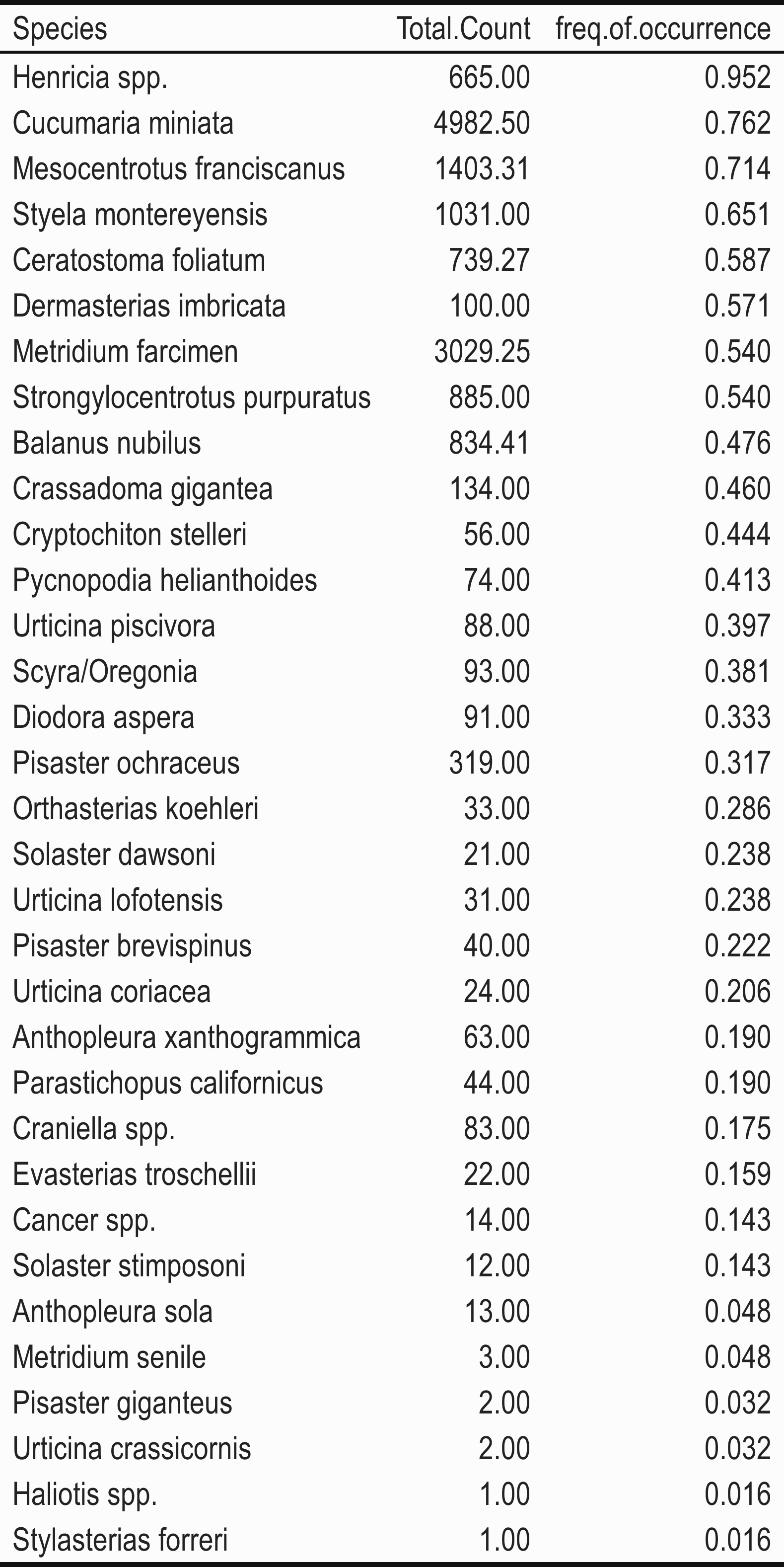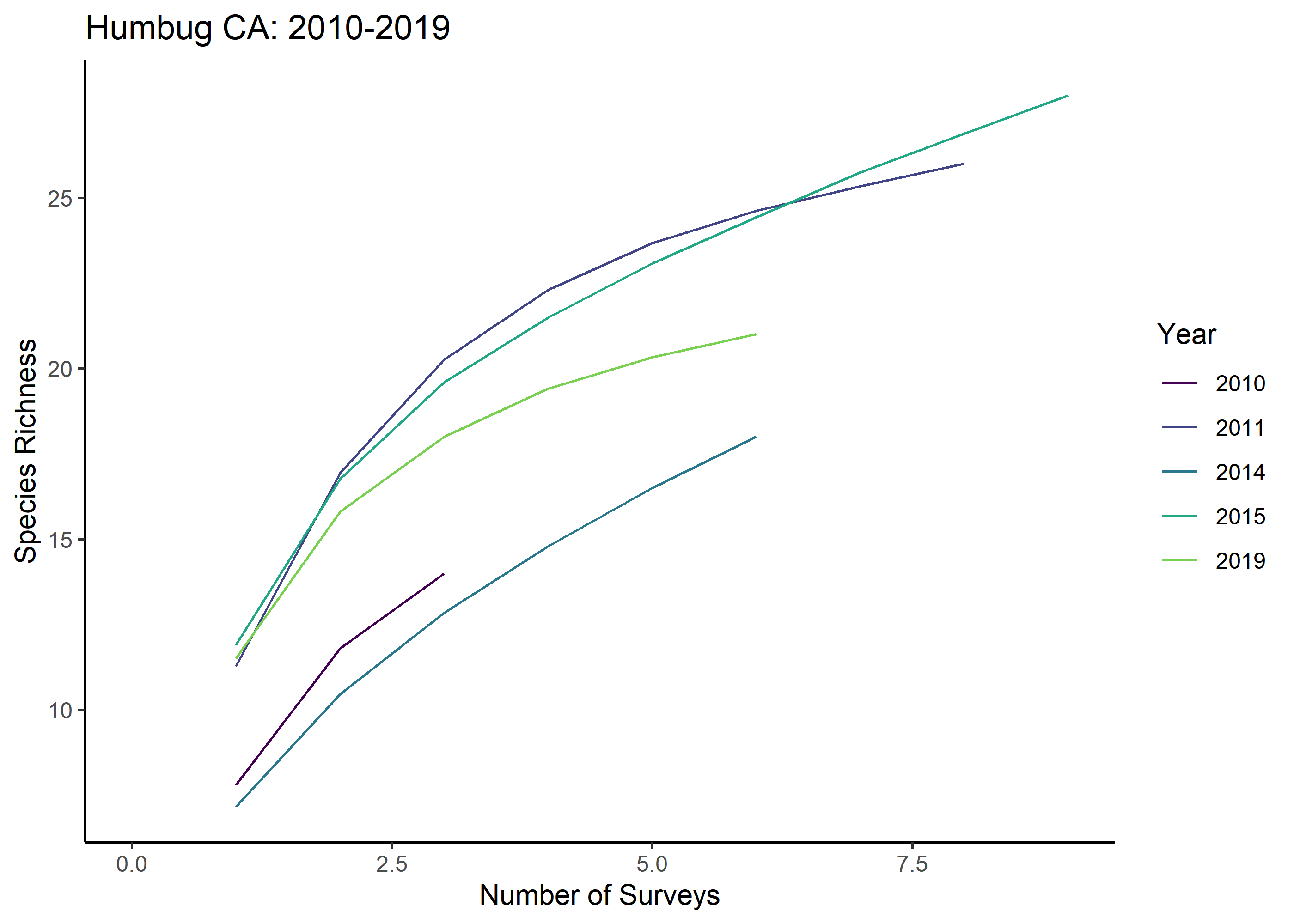 Data from SCUBA invertebrate monitoring efforts can be used to explore questions about invertebrate diversity, community composition and density. Questions about diversity and community composition can be used to compare across monitoring tools to understand tool bias or to validate trends seen across tools. This can further help us understand how the invertebrate communities at these sites are similar or different. Data on density enable us to explore changes over time; and whether these changes are similar both inside the reserve and outside in comparison areas. For all data our main focus is exploring trends by site and year.