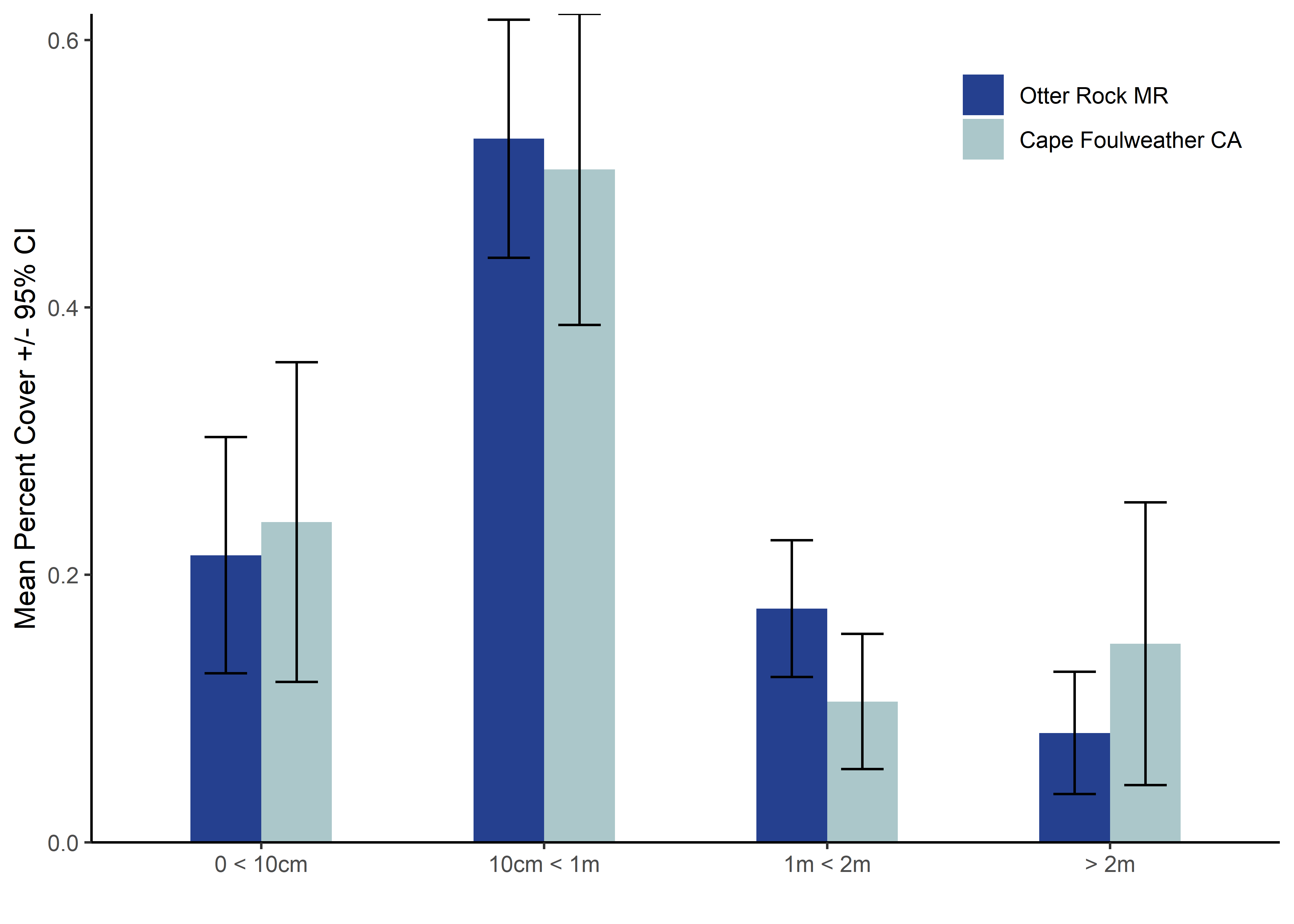 Benthic cover diversity was similar between Otter Rock Marine Reserve and Cape Foulweather Comparison Area.