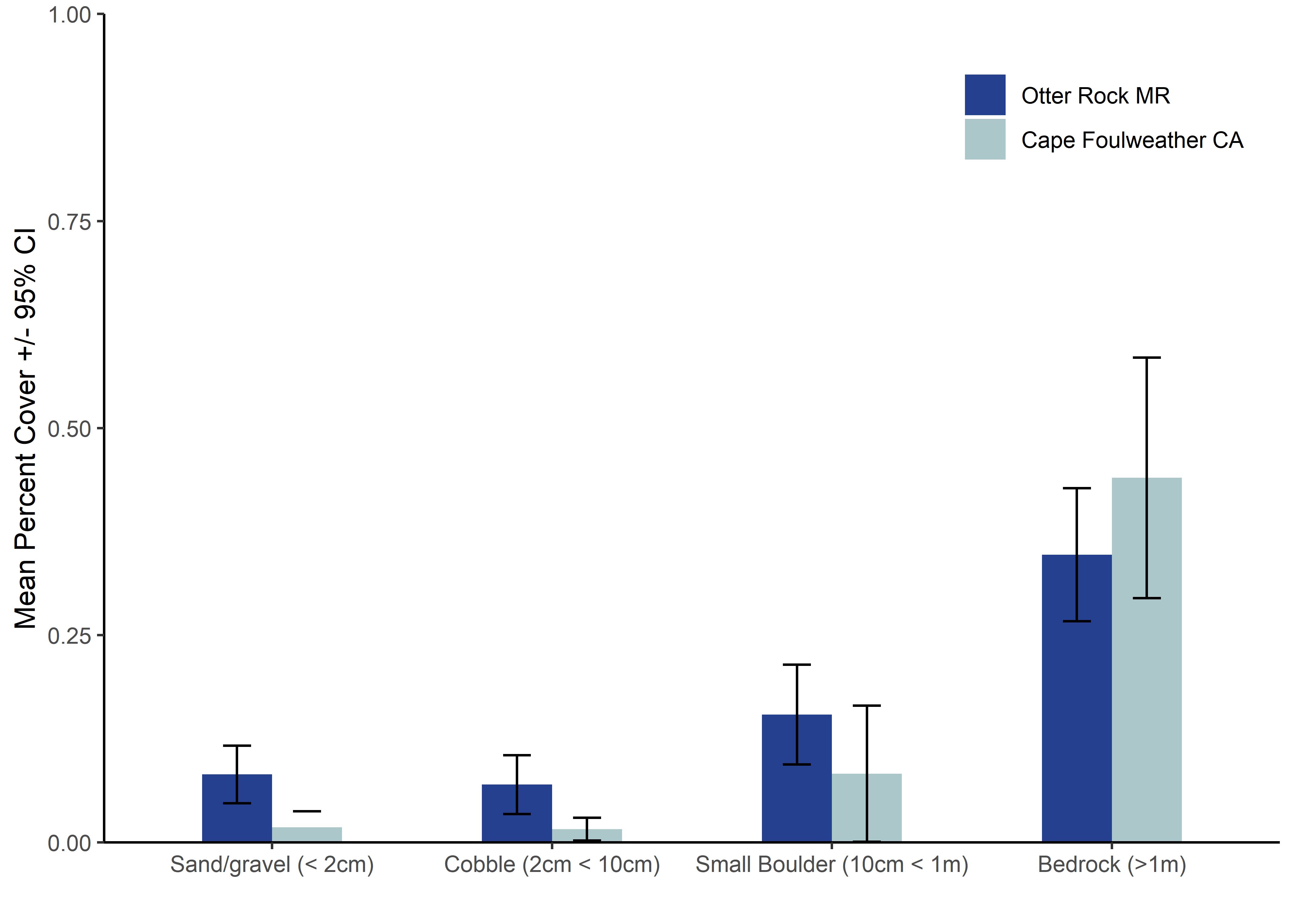 No apparent differences in substrate by site or year at the Otter Rock Marine Reserve and Cape Foulweather Comparison Area.