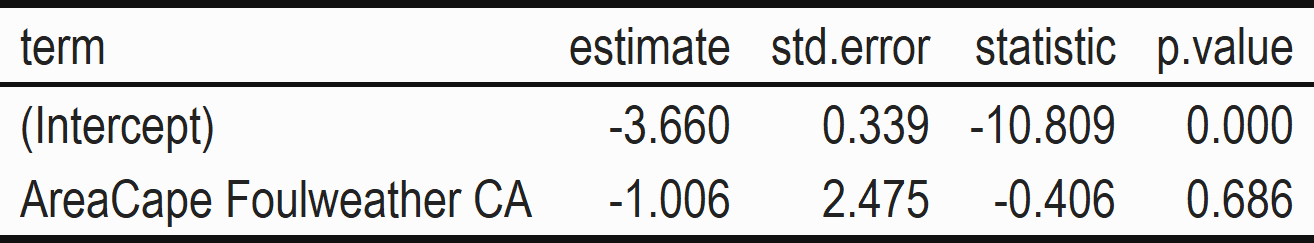 "Cape Foulweather Comparison Area"),