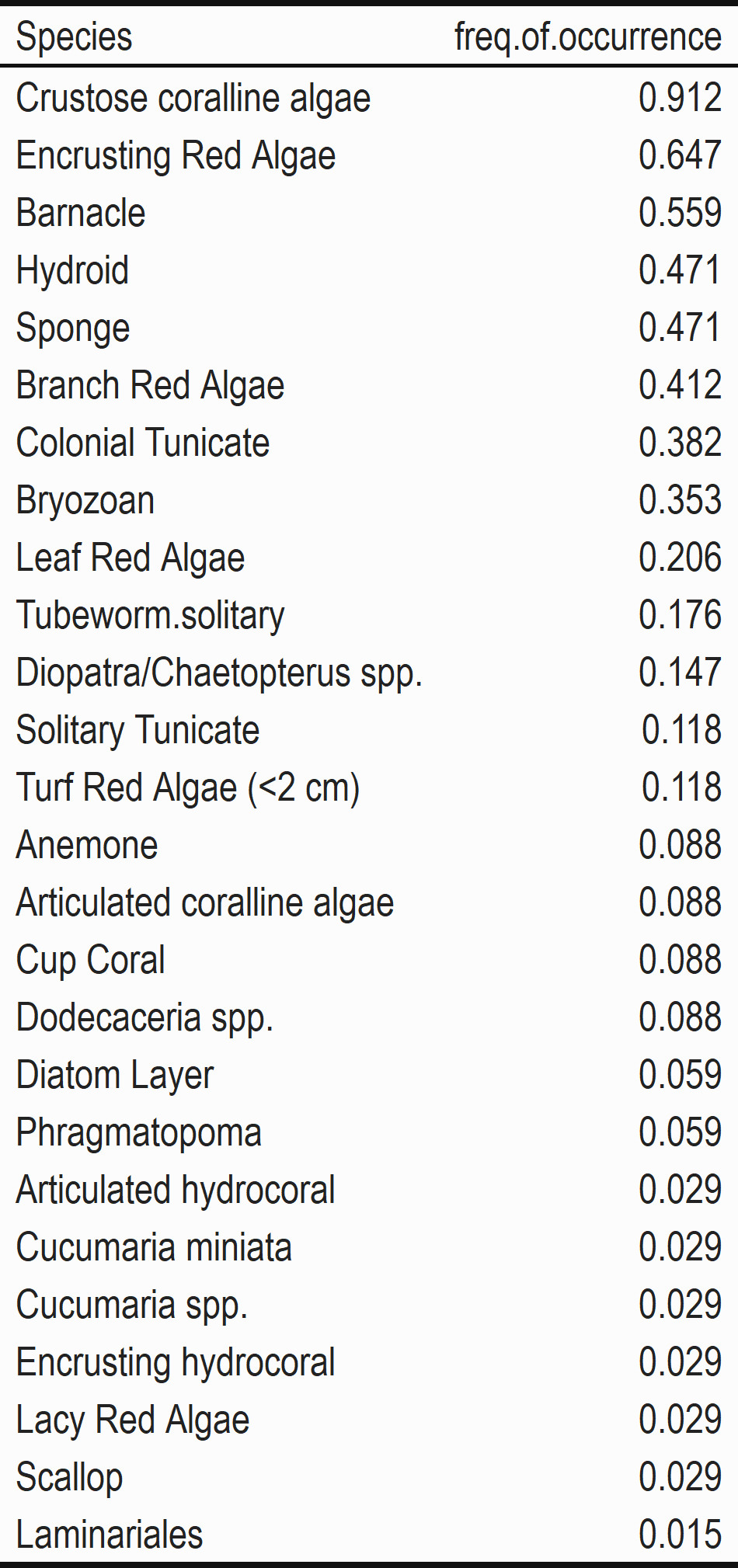 SCUBA habitat sampling characterizes benthic habitat cover and associated reef attributes (substrate type, relief) following PISCO protocols for uniform point count (UPC) surveys. These surveys provide insight into the structure and function of nearshore rocky reef communities in Oregon’s state waters. Divers record three types of information every meter along a 30m transect: substrate type, physical relief and identity of the organism attached to the reef. The percent-cover of space-occupying organisms is estimated for species that are directly attached to the primary substrate and includes non-motile benthic invertebrates and algae. Two depths are targeted for these surveys 12.5 and 20 meters. Write-ins are allowed, for species not included on PISCO data-sheets.