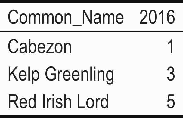 Table 6: Moderate Fishing Pressure Comparison Area Species Counts by Year