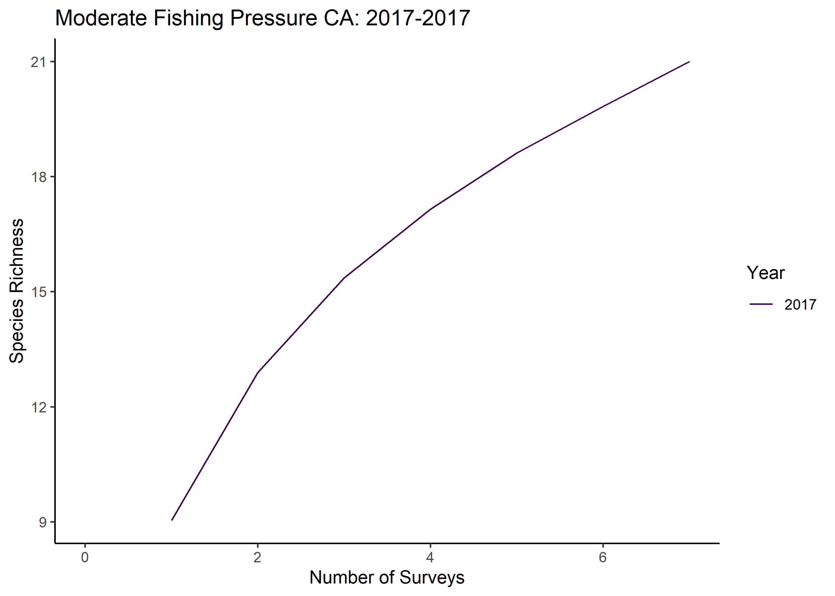 Our SCUBA invertebrate sampling at Cape Falcon began in 2016, the year harvest restrictions began. Sampling attempts were made in 2015 but did not result in data collection due to poor visibility and challenging weather conditions. Sampling is conducted in the marine reserve and three comparison areas that represent varying levels of fishing pressure (see methods Appendix for additional information about comparison area selection). We conducted two years of sampling that are included in our analysis and report. Note, we were not able to successfully collect data in the comparison areas until 2017.
