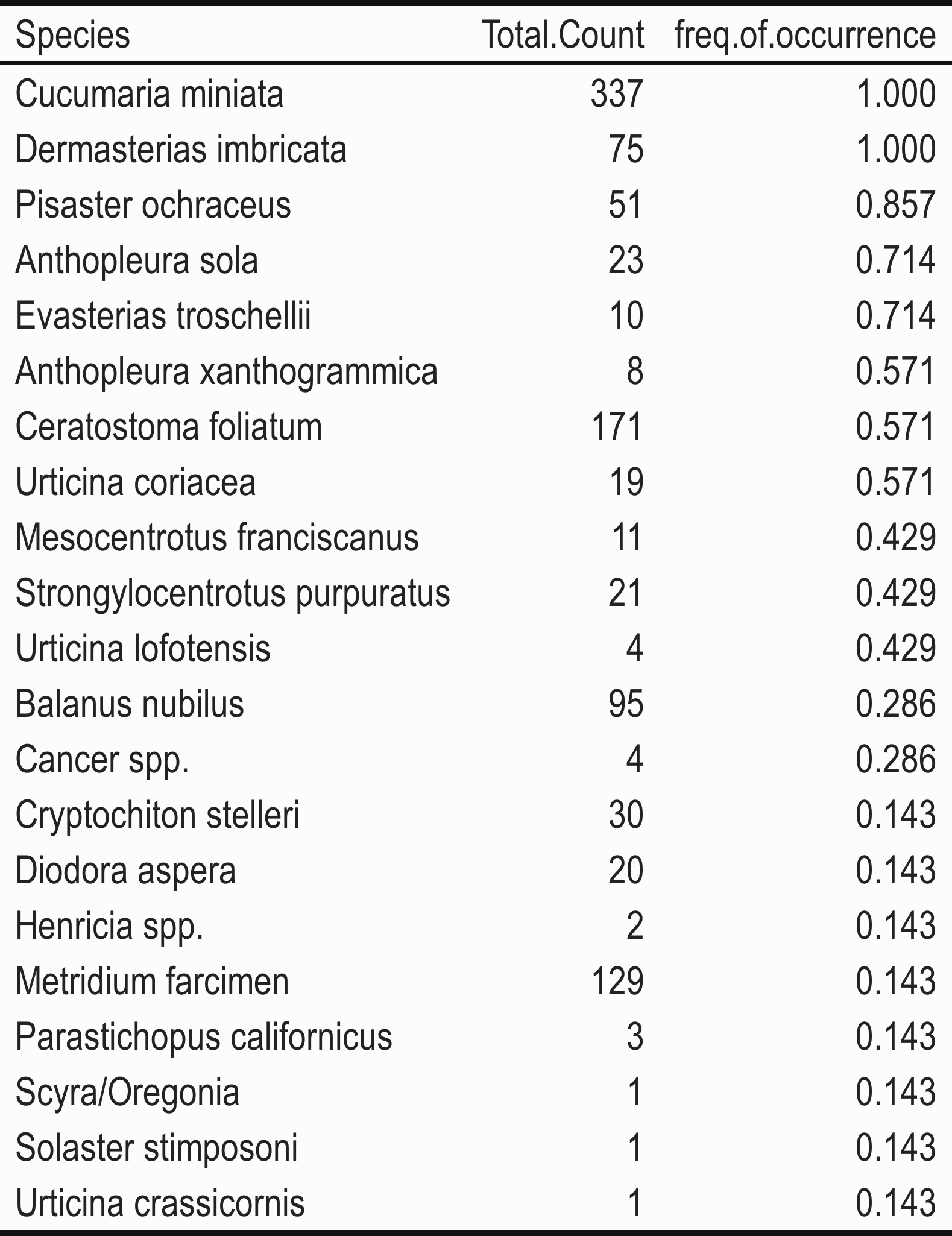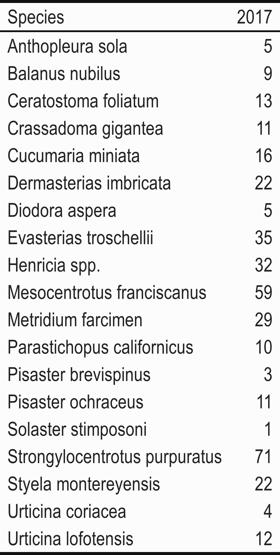 SCUBA invertebrate sampling targets the density of specific, conspicuous, solitary and mobile invertebrates. Organisms are chosen due to the large abundance, economic value, or ecological value. Only targeted invertebrates greater than 2.5 cm are counted along a 30 x 2 m belt transects across two target depths, 12.5 and 20 meters. No write-ins are allowed.