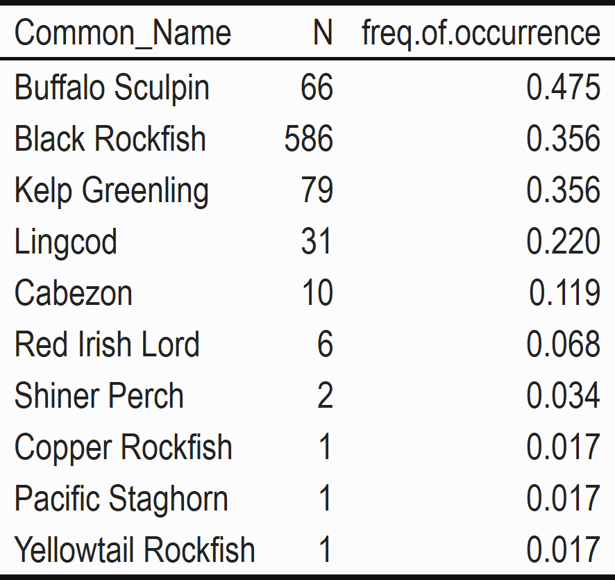Table 4: Redfish Rocks Marine Reserve Pooled Species Frequency of Occurrence